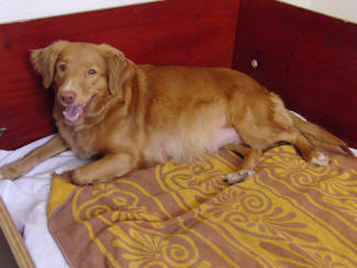 Bevallingsverslag pups Ylva x Yonek ~~ geboren op 09-04-2016 Op zaterdag 9 april zou Ylva 63 dagen drachtig zijn, de termijn die staat voor de dracht van een hond. De laatste 2 weken daarvoor was Ylva duidelijk flink aan het groeien., dus ook voor ons werd het steeds spannender. Vanaf 7 april krijgt Ylva duidelijk graafneigingen in de tuin. Ondanks dat is ze nog topfit en laat zich niet beperken door haar toegenomen omvang. Toch besluiten wij voor Ylva, dat de rondjes op de hei wel wat ingekort kunnen worden en dat accepteert ze zonder morren, want thuis neemt ze toch duidelijk meer rust.