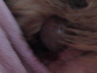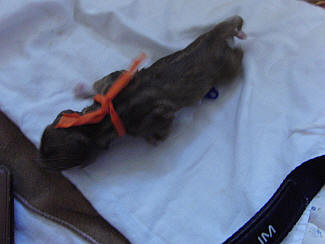 17.22 uur De eerstgeborene van Ylva is een feit, Het is een reu met witte teentjes , een beetje wit op de buik en een heel klein wit staartpuntje. Hij weegt 377 gr en krijgt een blauw bandje om